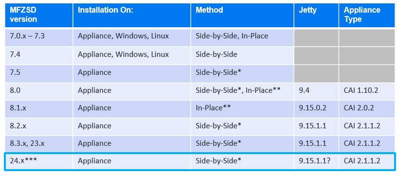 *Note: Upgrading a v7.5 Appliance to v8.x Appliance requires an rpm script to be run before upgrading to prepare VAStorage drive.