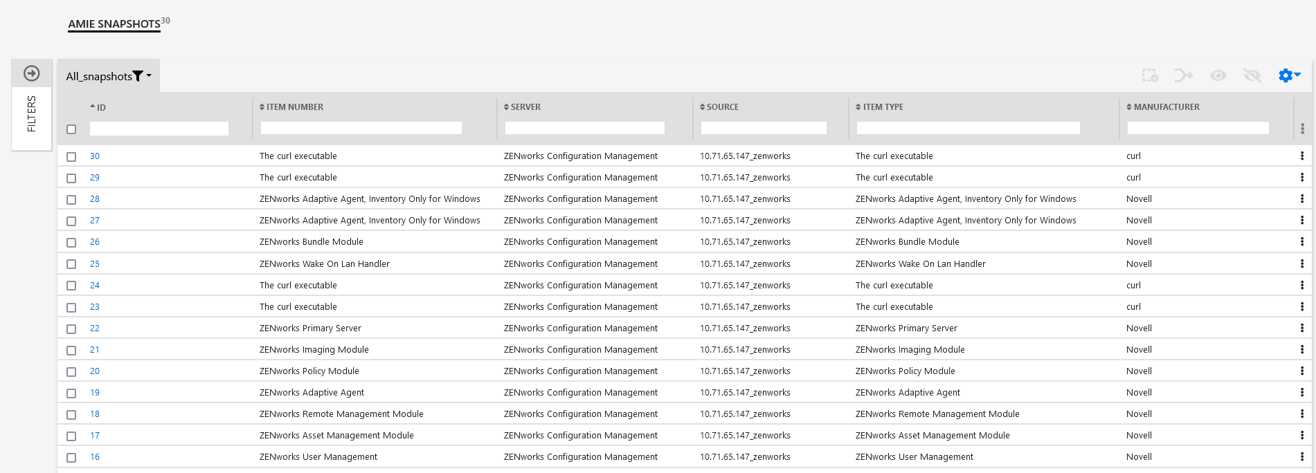 All AMIE Snapshots applied to an Item are removed from the AMIE Snapshot List View, when the list filter is set to display Unassigned Snapshots.