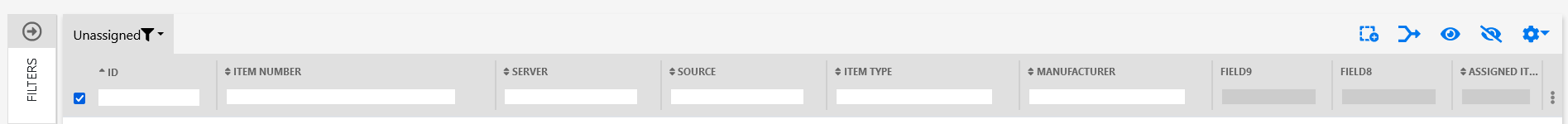 Unassigned: searches AMIE Snapshots that are not assigned to an Item.