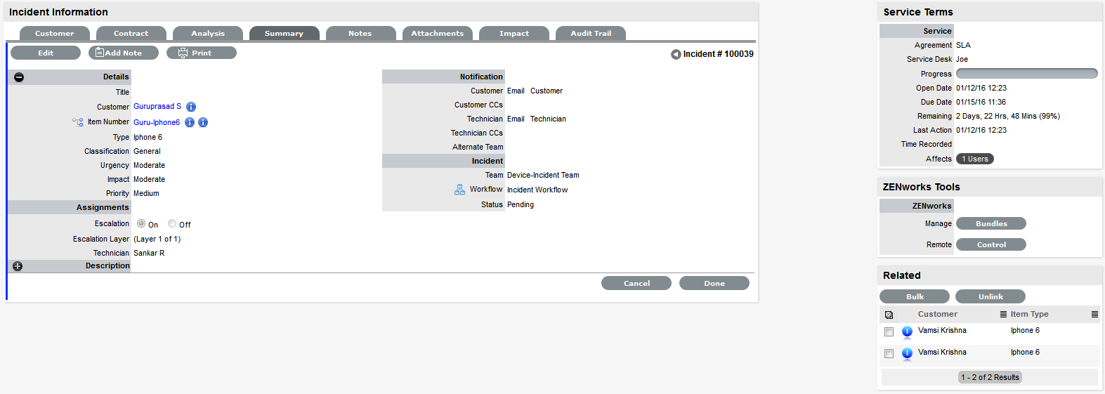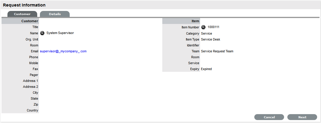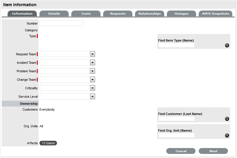 Associate the SLA to an Item or Customer or Org Unit. This final step ties all the elements together when a Service Request is created, as the SLA associated with the Item, Customer or Org Unit assigned to the Request determines the Workflow, Team and Technicians that are made available within the Service Request Information screen.