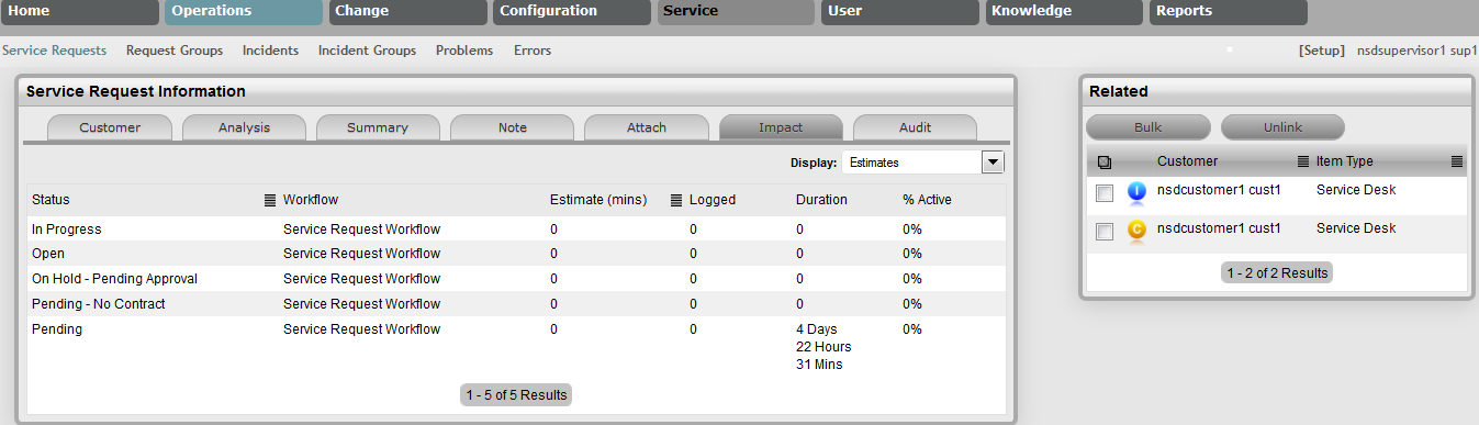 Review the Service Request Workflow within the Service>Workflows tab. (See: Service Request Workflow.)