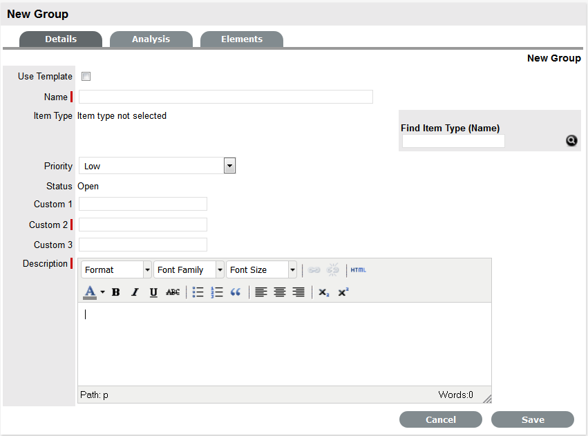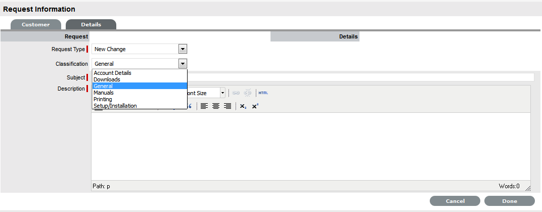 Set the Name, Item Type, Classification, Status, Priority and Description that best defines all associated requests