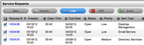 Requests can be grouped by selecting the checkboxes next to the Request #, followed by the Link button.