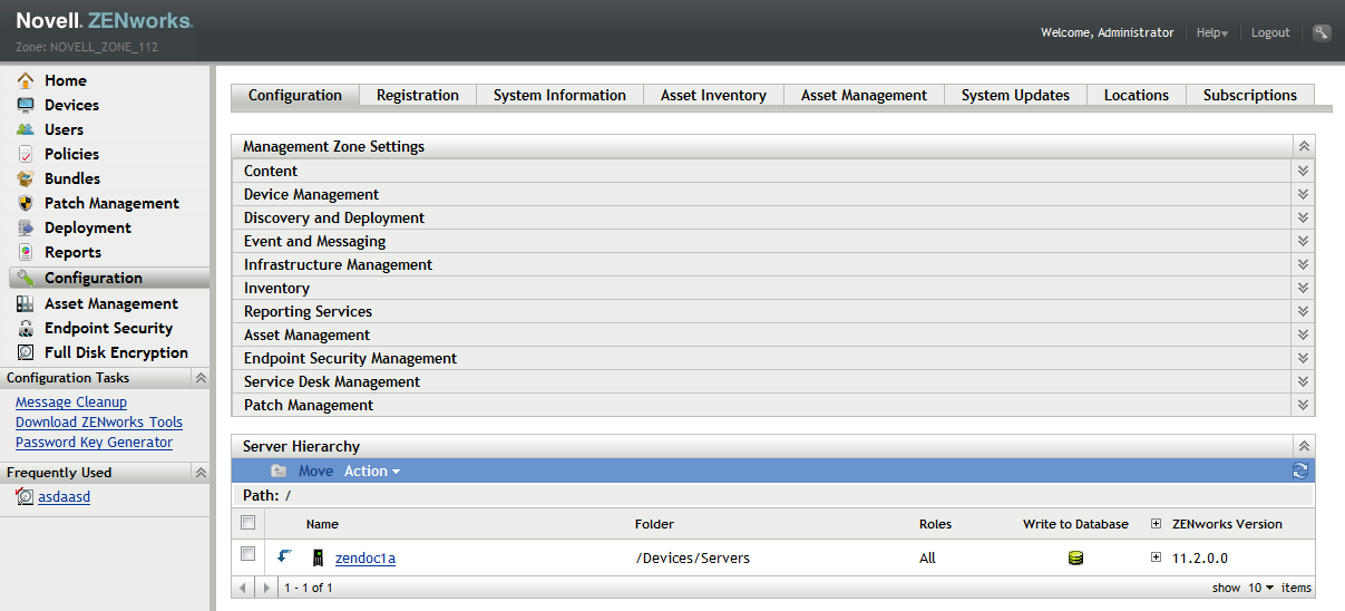 In ZENworks Control Center, click to display the Configuration page.