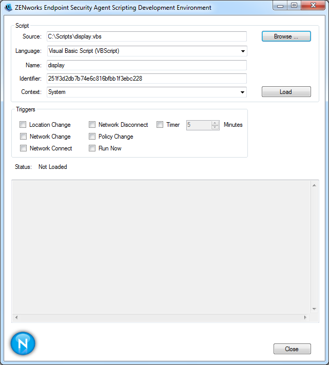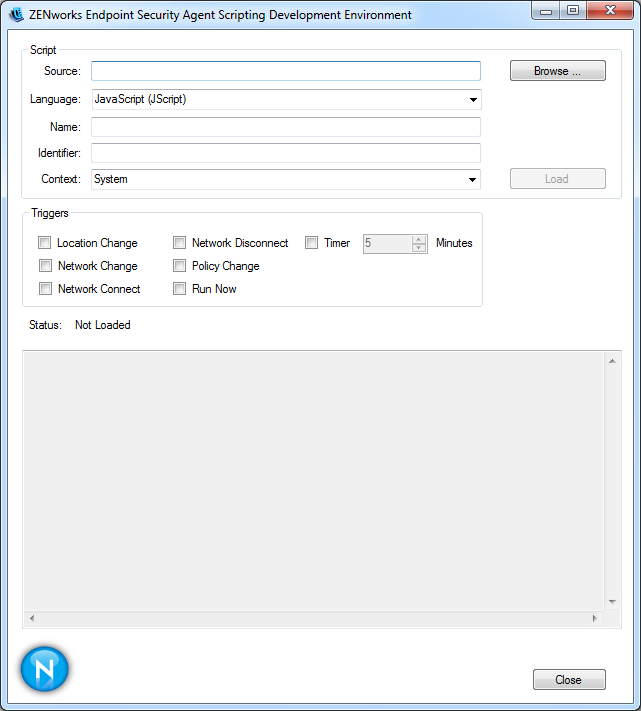 Specify the override password, then click to display the ZENworks Endpoint Security Agent Scripting Development Environment dialog box.