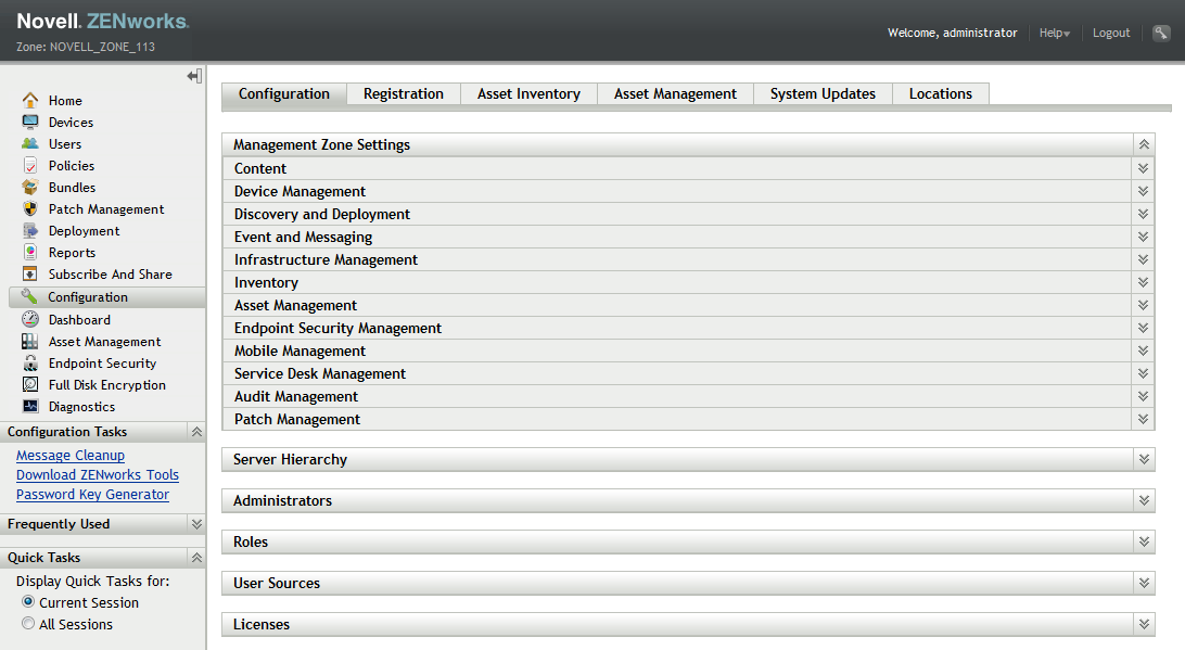 1. In ZENworks Control Center, click Configuration to display the Configuration page.