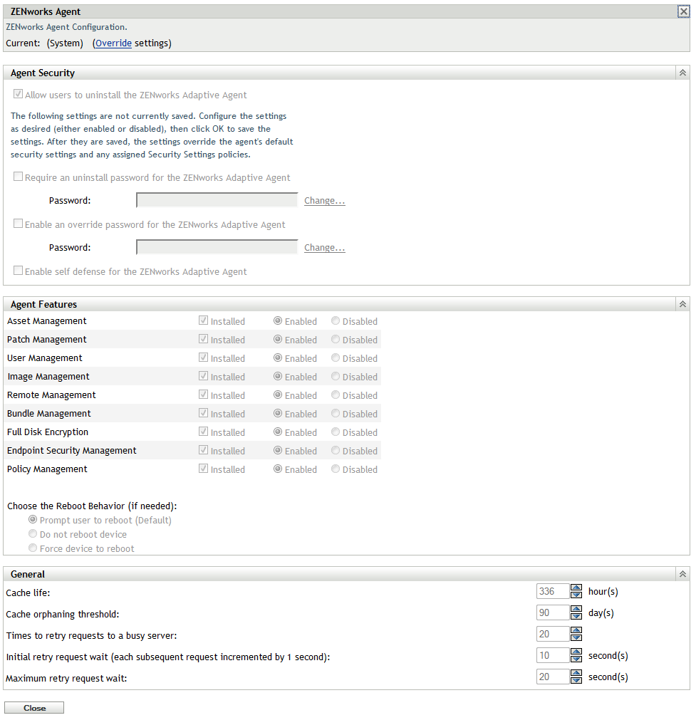 Fill in the fields. For more information, see Section 4.4, ZENworks Agent Settings.