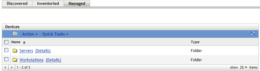 2. Click the Servers or Workstations folder.