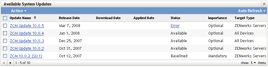 Displays the relative importance of the update’s content to your ZENworks installation. Some possible entries include: OPTIONAL: Not required for normal operation of ZENworks. MANDATORY: A required update that must be applied. |