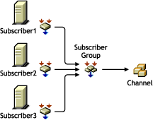 The following illustrates a Subscriber Group's relationship with Subscribers and Channels.