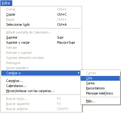 Puede convertir un elemento del buzón por otro tipo de elemento. Por ejemplo, puede cambiar un mensaje de correo del buzón y convertirlo en una cita del calendario. La nueva cita contiene toda la información del mensaje de correo (como las listas , y el tema y el texto del mensaje) que se aplique a la cita.