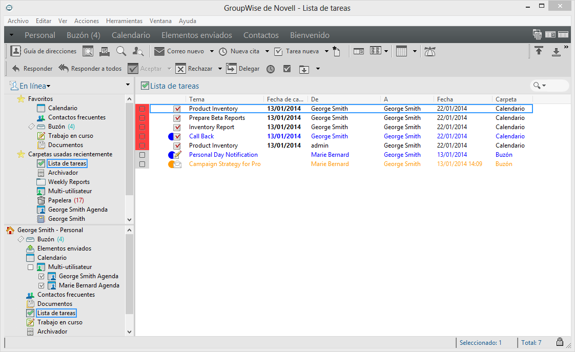 IMPORTANTE:si usted o el administrador de GroupWise han configurado el archivado automático de elementos en el buzón, los elementos de la lista de tareas también se archivarán según la fecha original en la que se recibió el elemento, no por la fecha de caducidad.