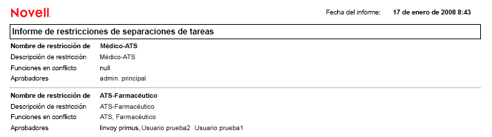 Figura 19-3 Ejemplo de informe de restricciones de separaciones de tareas