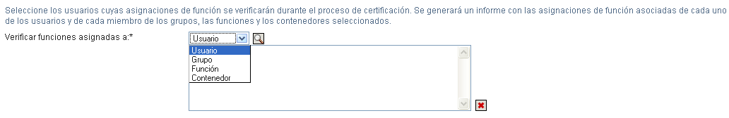 Debe seleccionar como mínimo un usuario, grupo, función o contenedor para iniciar un proceso de certificación. Sin embargo, no es necesario seleccionar ninguno de estos para guardar una petición.