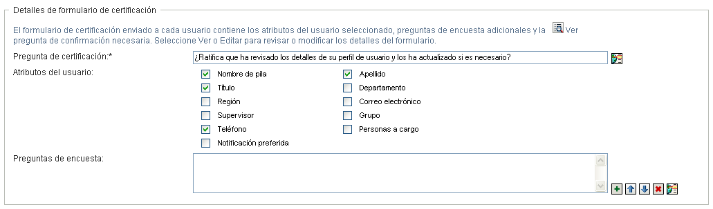 Etiqueta visible, Descripción de la petición, Verificar las asignaciones de, Usuarios certificadores, Fecha límite, Informe local, Pregunta de certificación