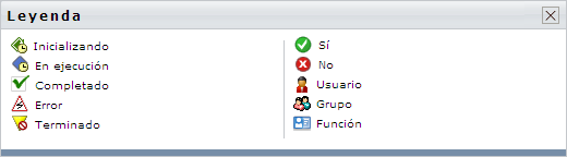 La leyenda ofrece una breve descripción de los iconos utilizados en la pestaña . La siguiente ilustración muestra la leyenda.
