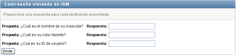 Es posible que en cuanto entre a la aplicación de usuario del Gestor de identidades, el sistema le solicite otro tipo de información. Depende de cómo haya configurado su directiva de contraseña (si existe) el administrador del sistema. Por ejemplo: