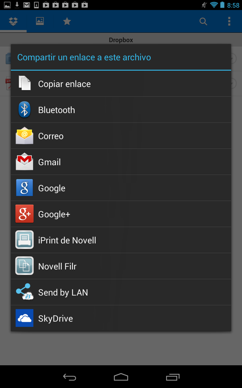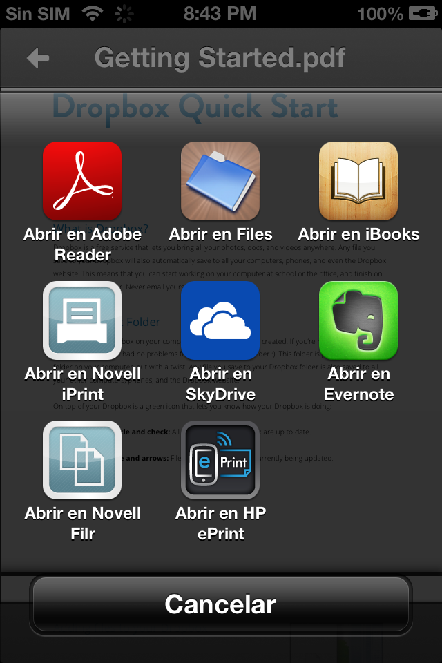 En dispositivos iOS, iPrint de Novell solo puede imprimir a través de aplicaciones que sean compatibles con la función .