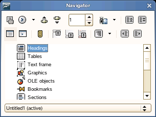 A Navigátor megnyitásához kattintson a menüpontra. A Navigátorban felsorolt elemek a Writer programba betöltött dokumentumoknak megfelelően változnak.