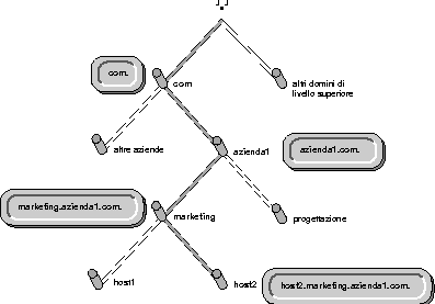 Each computer that uses DNS is given a DNS hostname that reflects that computer's position in the DNS hierarchy. Thus, the DNS hostname for host2 in Figure 2-3 is host2.marketing.company1.com.