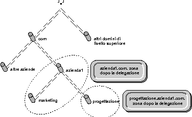 In addition to maintaining host information for a zone, the administrator also has the authority to create and delegate subdomains. For example, suppose the engineering division at company1 has its own administrator. Therefore, company1 delegates the engineering.company1.com. subdomain to the engineering division. The company1.com. zone no longer has authority over the engineering.company1.com. domain. Now the company1.com. domain comprises two zones: