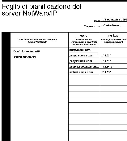 This worksheet lists the hostnames and IP addresses of all NetWare/IP servers you plan to configure for a given NetWare/IP domain.