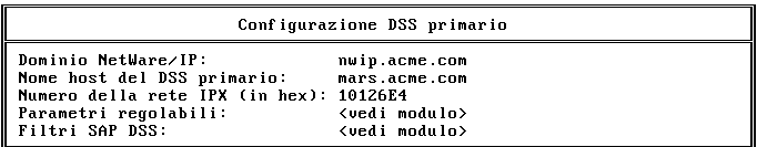 NetWare/IP Domain ---the domain for which this DSS server maintains SAP/RIP information. All NetWare/IP servers and clients using this primary DSS server are members of this domain. The NetWare/IP domain conforms to the same naming conventions as the DNS domain. For additional information about NetWare/IP domains, see NetWare/IP Domain