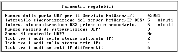 NOTE: If you change the NetWare/IP domain name, IPX network number, UDP Port Number values, or DSS SAP Filtering after the initial configuration, you must stop and restart the primary DSS server, each secondary DSS server, each NetWare/IP server, and each NetWare/IP client. Changes to the other global parameters are propagated throughout the NetWare/IP network dynamically.