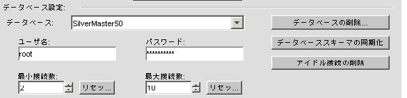 [データベース]パネル上部の[データベース接続の最大数]または[データベース接続の最小数]の横にある[リセット]をクリックします。