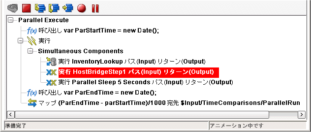 サービスまたはコンポーネントを初めて開いたときに使用できるのは、[アニメーションの開始]ツールと[ブレークポイントの切り替え]ツールのみで、ほかは淡色表示になっています。 [アニメーションの開始]ボタンをクリックすると、ほかのアニメーションツールもクリックできる状態になります。 アニメーションを一時的に停止したいときは、[アニメーションの一時停止]ボタンを使います。 同様に、アニメーションを中断したいときは、赤い[アニメーションの終了]ボタンをクリックします。