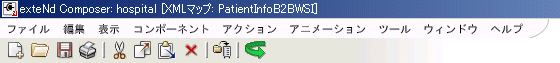 タイトルバーには、開いている現在のプロジェクトの名前が表示されます。 「プロジェクト」とは、まとめて開発、保守、および展開を行うexteNd Composerサービスの集合です。
