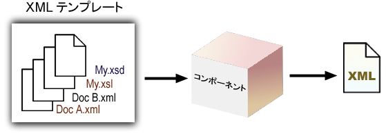 XMLテンプレートは、Composerで作成され、 前に説明したように、コンポーネントで使用できるファイルのセットを構成するサンプルドキュメント、ドキュメント定義、およびXMLスタイルシートが含まれます。 XMLテンプレートは、コンポーネントの設計段階の早い時点で作成し、作成するコンポーネントの入力および出力を指定するために使用します。