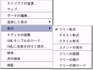 メインメニューバーの[表示]オプションを使用すると、コンポーネントエディタでXML情報を表示する方法を選択できます。表示方法は、ツリー、テキスト、または様式化された形式の中から選択できます。各ビューには、マウスを右クリックするとアクセスできる独自のコンテキストメニューがあります。