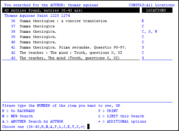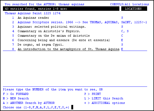 この例のアクションモデルにおける最初の部分は、前の例(50ページの「Telnetセッションの記録」を参照)ので作成したアクションとほぼ同様です。ただし、この例では著者名としてThomas Aquinasを使用する点が例外です。初期アクションは、「Thomas Aquinas」という著者名検索を実行するために必要な画面の確認アクションおよびバッファの送信アクションのみです。
