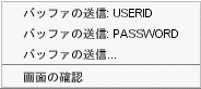 バッファの送信 - バッファの送信アクションを作成できます。[バッファの送信]ダイアログボックスが表示されます。このダイアログボックスでは、Telnetホストアプリケーションに送信されるテキストまたはコントロールキーコマンド、あるいはその両方を入力できます(このダイアログボックスでは、ECMAScript式、または入力DOMにある文字列データの位置を表すXPathフラグメントを入力することもできます)。このコマンドの使用の詳細については、次の章を参照してください。