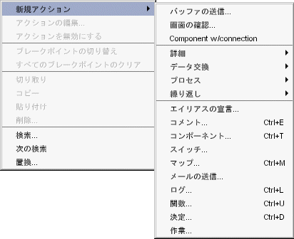記録の開始/停止 - このメニューオプションは、ホストプログラムと通信する場合にアクションの自動作成を管理します。[記録の開始]は画面を操作する際にアクションの自動作成を有効にし、[記録の停止]はアクションの作成を終了します。