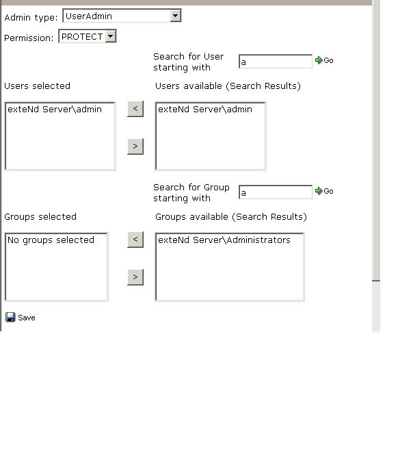 許可を選択したら、選択したACLのユーザおよびグループのリストが、[選択されたユーザ]および[選択されたグループ]リストに表示されます。