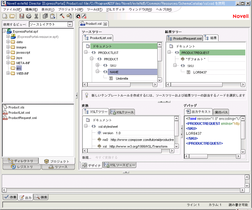 exteNd Director 開発環境には、XSLの操作用に次のツールがあります。