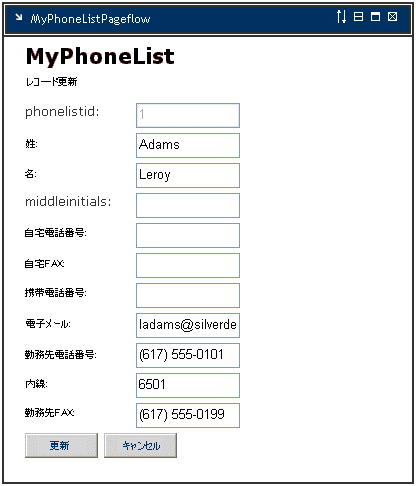 データベースページフローウィザードにより、フォーム(XFormsテクノロジを採用しているXHTMLページ)のセットだけでなく、ページフロープロセスも生成されます。このプロセスにより、フォームが1つに融合され、シンプルなデータベースアプリケーションになります。 このアプリケーションは、データベーステーブルにアクセスするための、便利で使いやすいインタフェースになります。