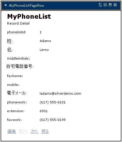 結果セットの1レコードの詳細を表示します。 これには[編集]ボタンもあり、現在のレコードに関連付けられた値を変更できます。