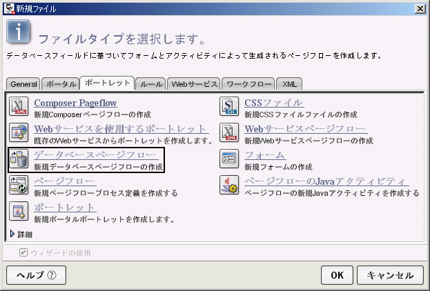 [データベースページフロー]を選択して、[OK]をクリックします。