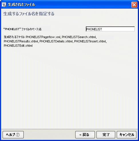 データベースページフローを作成すると、次のフォーム(XHTMLファイル)が生成されます。