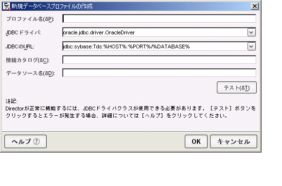 [新規データベースプロファイルの作成]ダイアログボックスで、次のように設定を指定します。