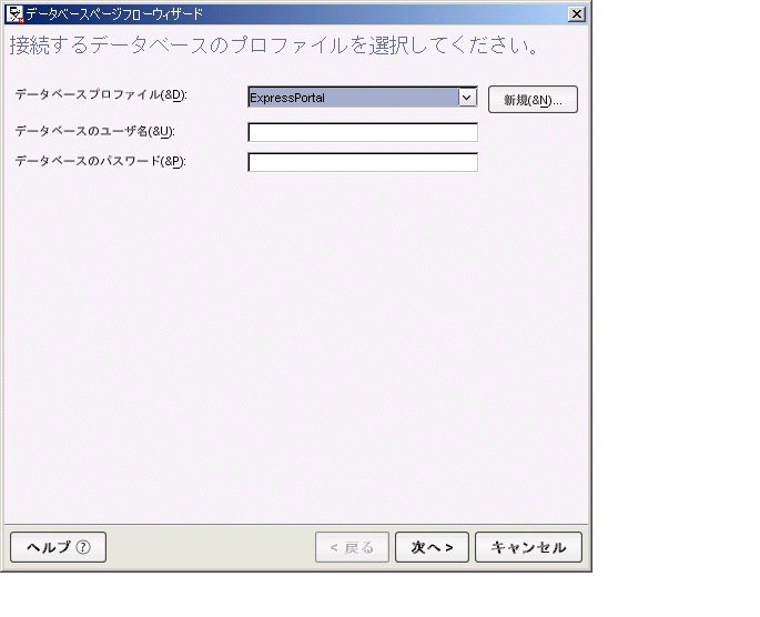 または、[データベースプロファイル]ダイアログボックスでデータベースユーザ名およびパスワードを入力し、[OK]をクリックします。
