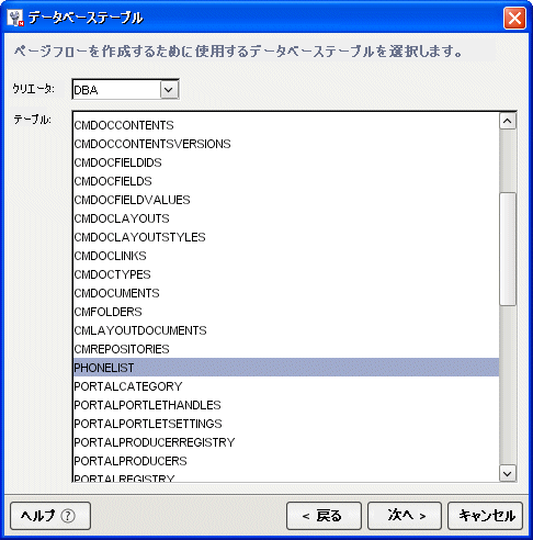 データベースページフローウィザードを使用すると、単一のデータベーステーブルにアクセスするフローを作成できます。また、多対1の関係(ルックアップ)または1対多の関係(マスタ/詳細)、あるいはその両方によって関係付けられた、他のテーブルに移動するフローも作成できます。