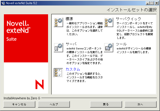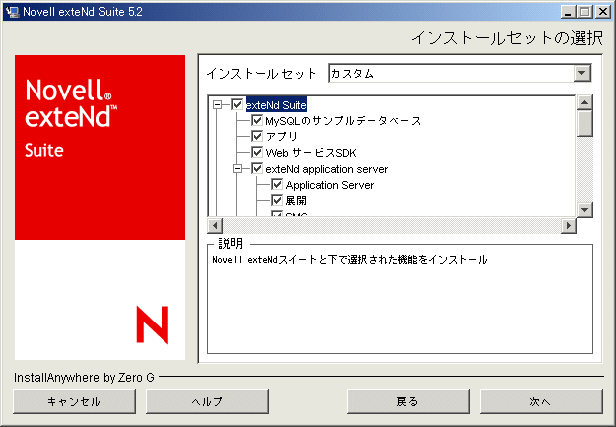 Novell exteNd製品スイートインストールプログラムを実行する([カスタム]オプションを使用)