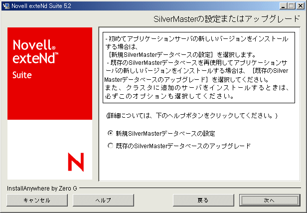 新しいSilverMasterをセットアップするか、既存のものをアップグレードするかを指定します。