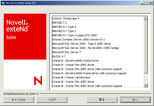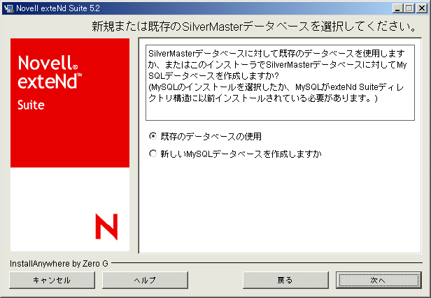 NetWareで[サーバ]インストールを使用する場合、NetWareインストールの一部としてインストールされたApplication Server およびMySQL SilverMaster が使用されます。 exteNdスイートのインストール中、これらは再インストールされません。