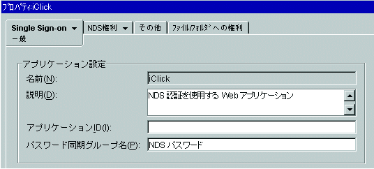 [Single Sign-on]タブ>[一般]をクリックします。 設定したグループ名を[パスワード同期グループ名]フィールドに入力します。