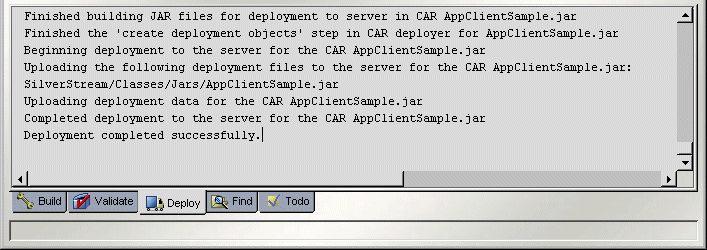 たとえば、AppClientSampleプロジェクトの作成およびアーカイブ操作を実行すると、クライアントJARファイルのAppClientSample.jarが生成され、次のメッセージが表示されます。
